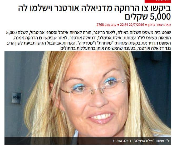 ביקשו צו הרחקה מדניאלה אורטנר וישלמו לה 5,000 שקלים